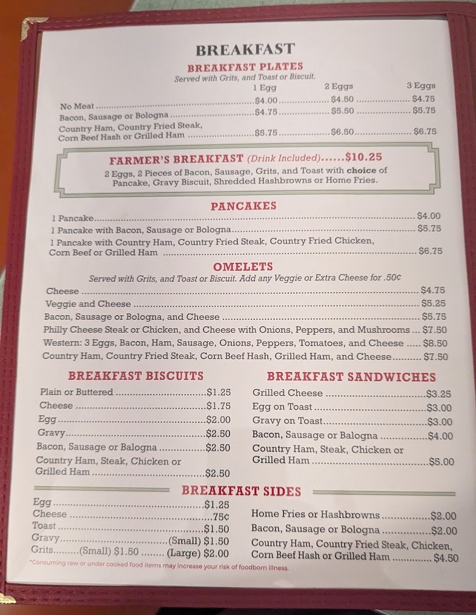 The menu features a variety of hearty options, highlighted by favorites such as the country fried steak paired with creamy white gravy, alongside mashed potatoes and flavorful mac and cheese. Diners rave about the freshness and quality of the offerings, with many noting the quick service and reasonable prices.